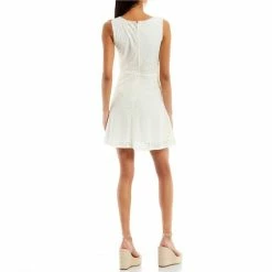 Outlet 🥰 City Vibe Sleeveless Peekaboo Front Glitter Knit Pleated Fit-And-Flare 👗 Dress Royal Blue 🌟
