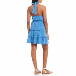 Best reviews of 💯 City Vibe Sleeveless Halter Neck Smocked-Waist Fit-And-Flare 👗 Dress Blue ❤️