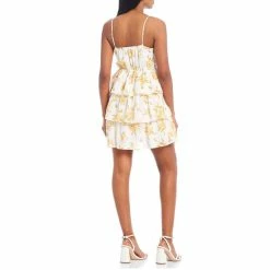 New ✨ City Vibe Puffed Sleeve Floral Printed Fit-And-Flare 👗 Dress Black/yellow/pink 😀