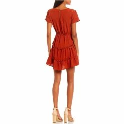 Best deal 🌟 City Vibe Puff Short Sleeve Sweetheart Tie Neck Floral Tiered 👗 Dress Pink/purple 🧨