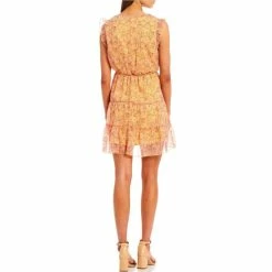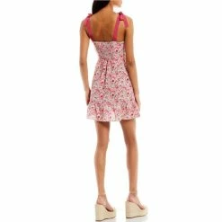Best Sale ⌛ City Vibe Sleeveless Floral-Printed Tie Strap Flounce-Hem 👗 Dress Pink/green 😀