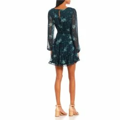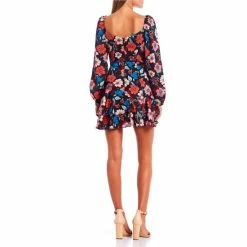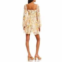 Cheap 😀 City Vibe Tier Long Sleeve Sweetheart Neck Sheer Floral Tiered 👗 Dress Ivory/yellow 👍