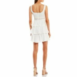 Budget 🤩 City Vibe Sleeveless Sweetheart Neck Tie Front Tiered Clip Dot 👗 Dress Ivory 🔔