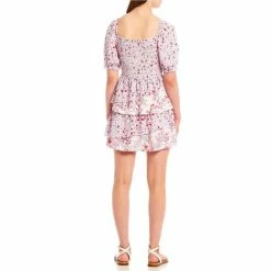 Budget 🔔 City Vibe Floral Print Puff Sleeve Tiered Ruffle Hem Smocked Babydoll 👗 Dress Ivory/red ❤️