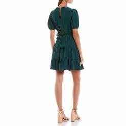 Top 10 ✨ City Vibe Puffed-Sleeve Clip-Dotted Chiffon Empire-Waist 👗 Dress Royal Blue ❤️