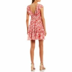 Top 10 😉 City Vibe Sleeveless Flutter V-Neck Lace-Up Front Tiered Floral 👗 Dress Red/pink ❤️