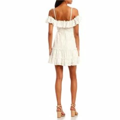 Promo 🛒 City Vibe Off-The-Shoulder Ruffle Neckline Tiered Fit-And-Flare Lace 👗 Dress White 🔥