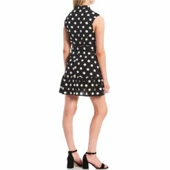 Wholesale 👏 City Vibe Cap Sleeve Large Dot Linen-Blend Fit-And-Flare 👗 Dress Black/white ⌛