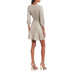 Wholesale 👏 City Vibe Lurex Knit Sequin V-Neck Waist Tie Wrap 👗 Dress Grey/gold 😍