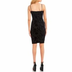 Wholesale 🔥 City Vibe Flocked Dot Mesh Cut Out Long Sleeve Velvet Fit And Flare 👗 Dress Black 👏