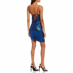 Hot Sale 🌟 City Vibe Sleeveless Lace-up-Drape-Back Metallic Stretch Sheath 👗 Dress Royal Blue 🔥
