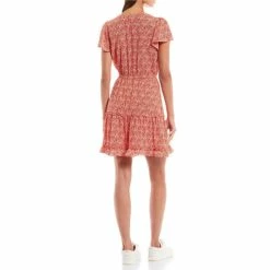 Flash Sale 😉 City Vibe Short-Sleeve Printed Waist Tie Fit-And-Flare 👗 Dress Ivory/red ✔️