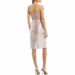 Flash Sale 👍 City Vibe Spaghetti-Strap Square-Neck Lace-Back Glitter Knit Sheath 👗 Dress Blush 🧨