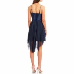 Cheapest 🎉 City Vibe Spaghetti Strap Sweetheart Neck Corset Bodice Pleated Hi-Low 👗 Dress Admiral 😉