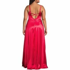 Promo ⭐ City Vibe Plus Spaghetti Strap V-Neck Corset Top Power Sateen Long 👗 Dress Bright Red 🎉