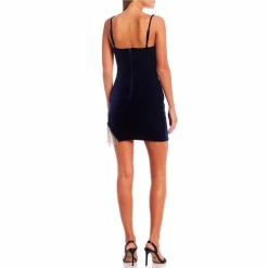 Wholesale ✔️ City Vibe Spaghetti Strap Sweetheart Notch Neck Slit Hem Slim Velvet 👗 Dress Navy 😉