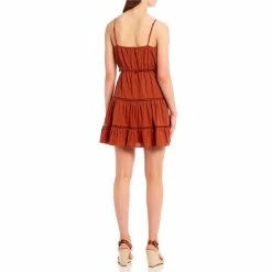 Best Pirce 👏 City Vibe Tie Front Tiered Skater 👗 Dress Rust 😉