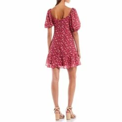 Best Pirce 💯 City Vibe Long Sleeve Emma Tie Sweetheart Neck Tiered Floral Print 👗 Dress Wine/pink 🤩